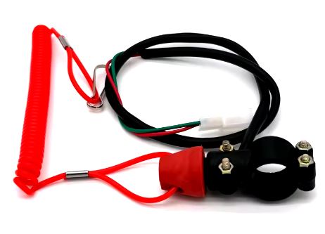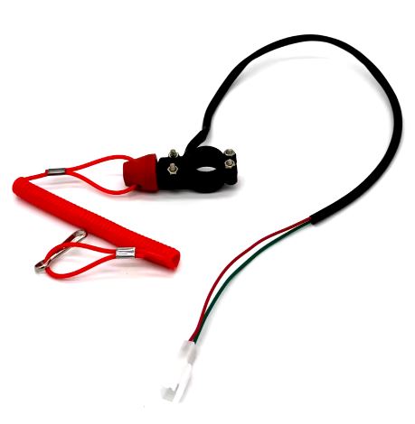 Interruttore di sicurezza con fascetta per il fissaggio al manubrio Ø 22 mm.completo di cablaggio per il collegamento.