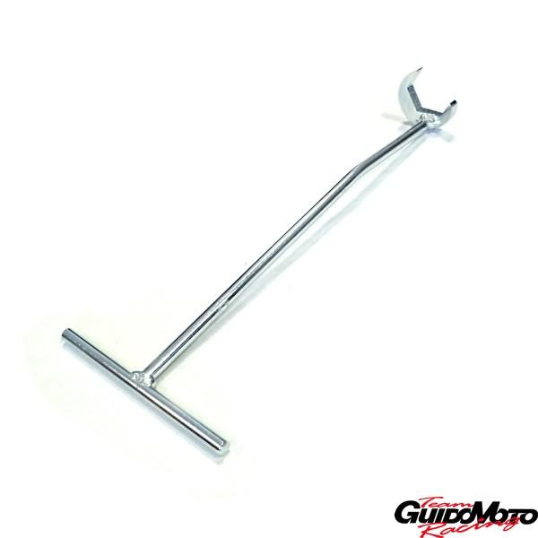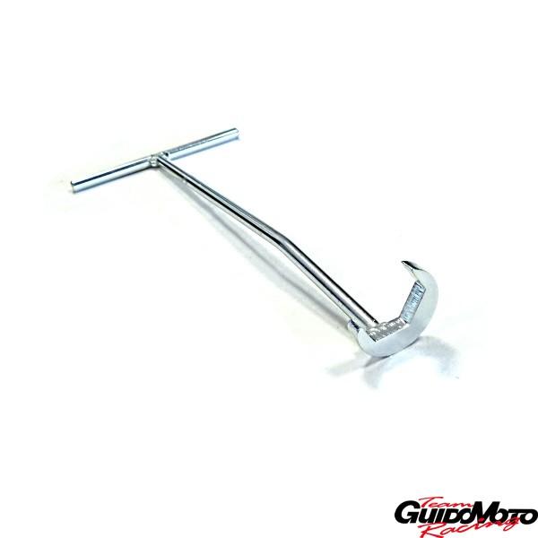 Chiave specifica in acciaio zincato misura 32 mm.con asta piegata per il montaggio e lo smontaggio del rubinetto serbatoio benzina.
