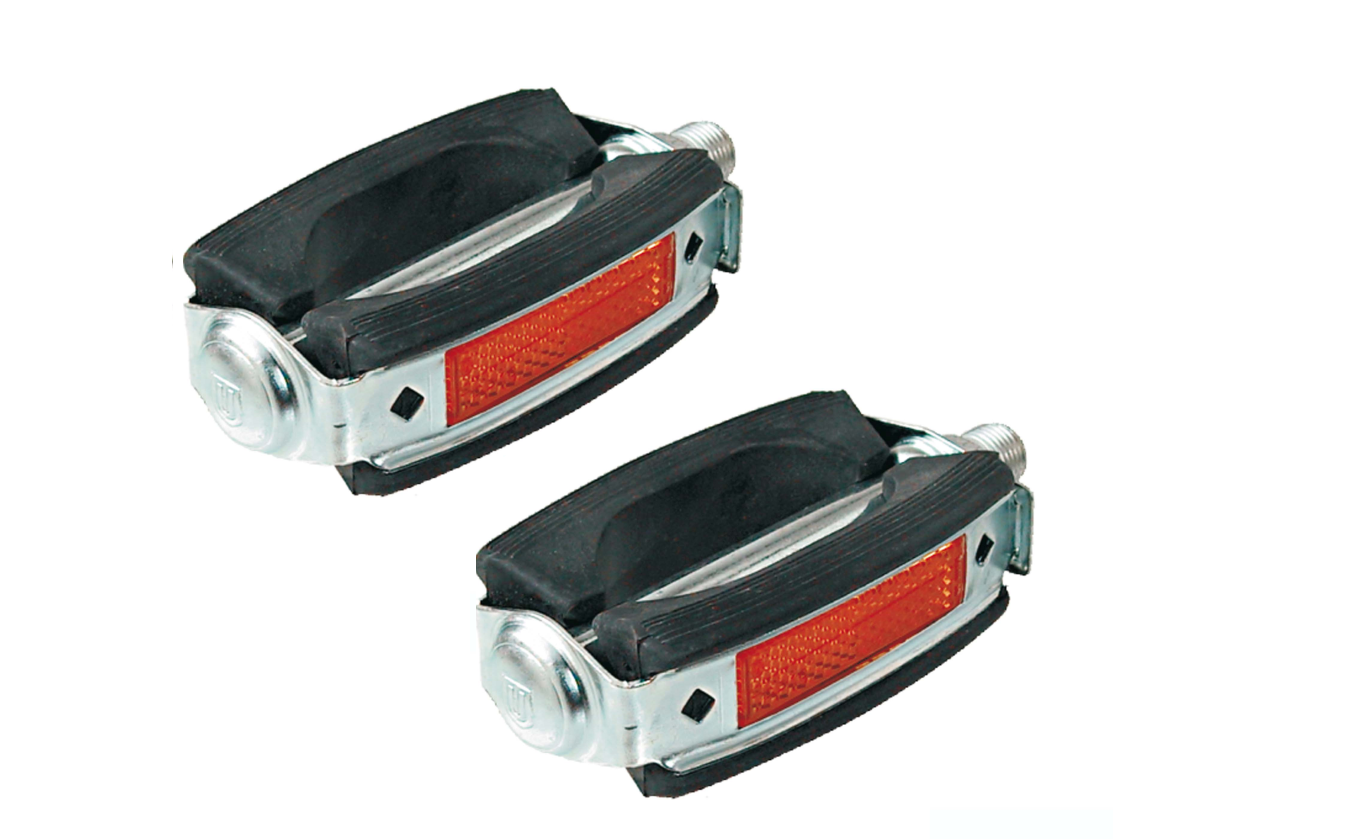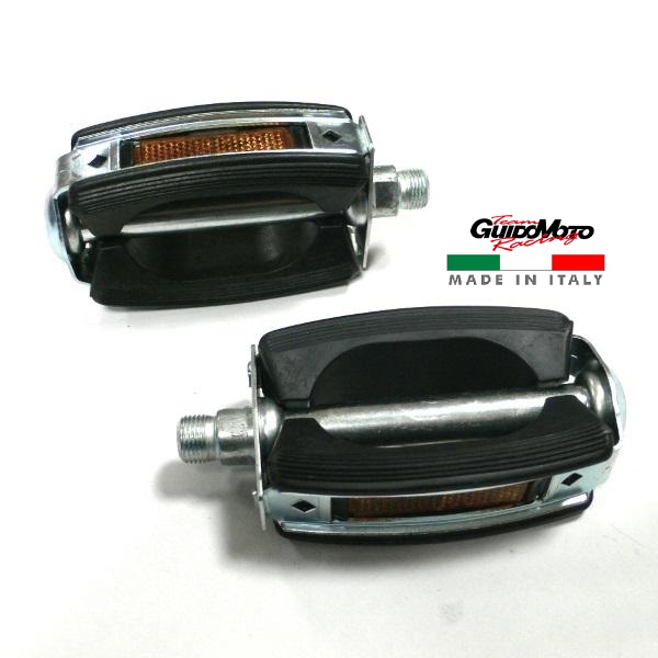 Coppia di pedali in ferro con gomma nera antiscivolo con perno movimento montato su sfere.