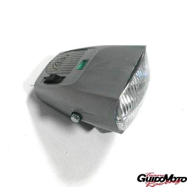 Fanale anteriore in plastica grigia a due luci completo di porta lampade, lampadine escluse.