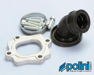 Collettore aspirazione Polini girevole a 360 gradi completo di kit fissaggio per motore scooter con Minarelli orizzontale.
