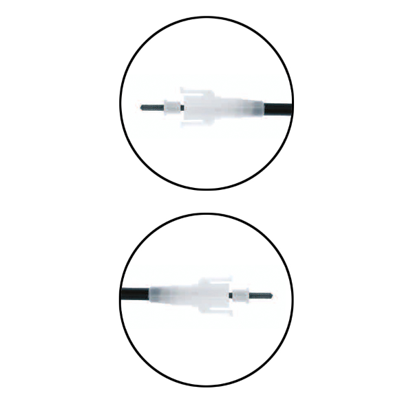 Corda contachilometri completa di cavo in acciaio e guaina con attacco rapido in plastica per innesto nello strumento.