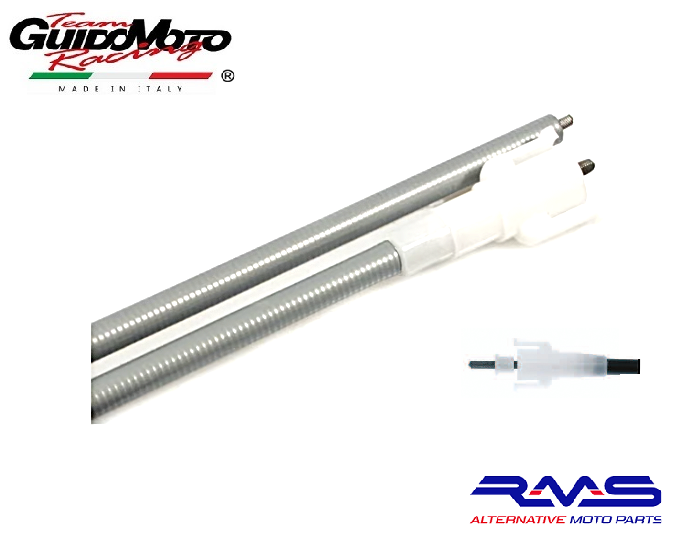 Corda contachilometri completa di cavo in acciaio e guaina con attacco rapido in plastica per innesto nello strumento.