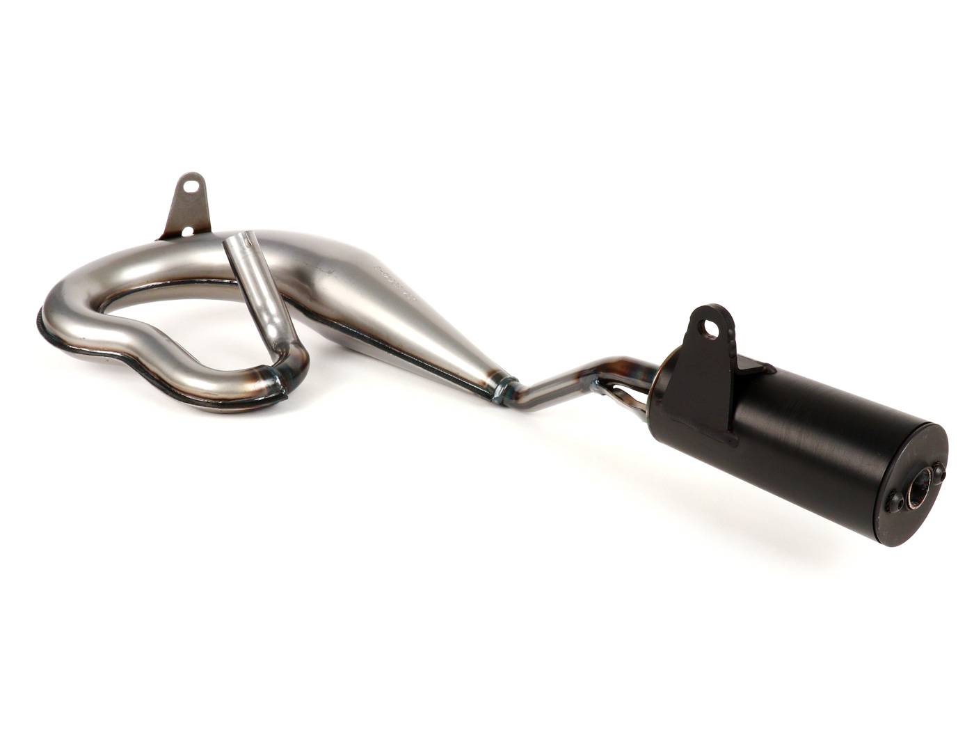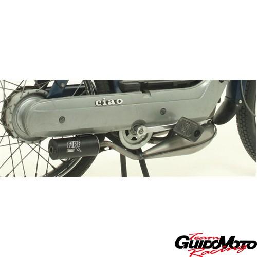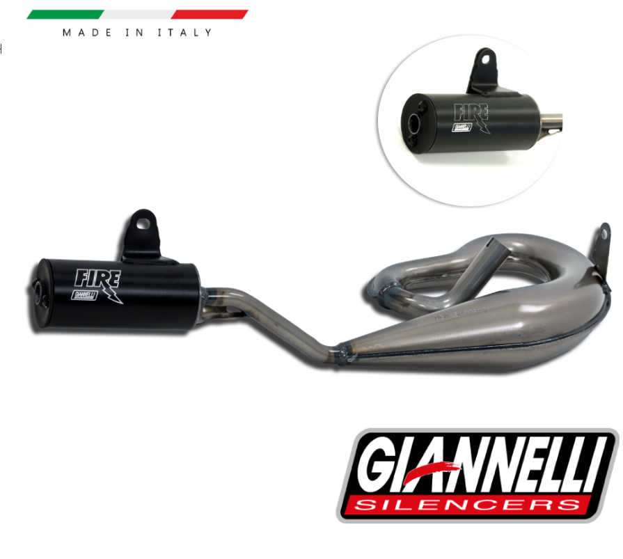 Marmitta Giannelli modello FIRE verniciata trasparente con silenziatore in alluminio nero rigenerabile.