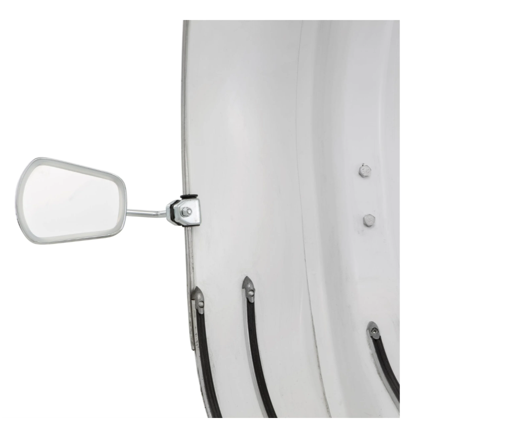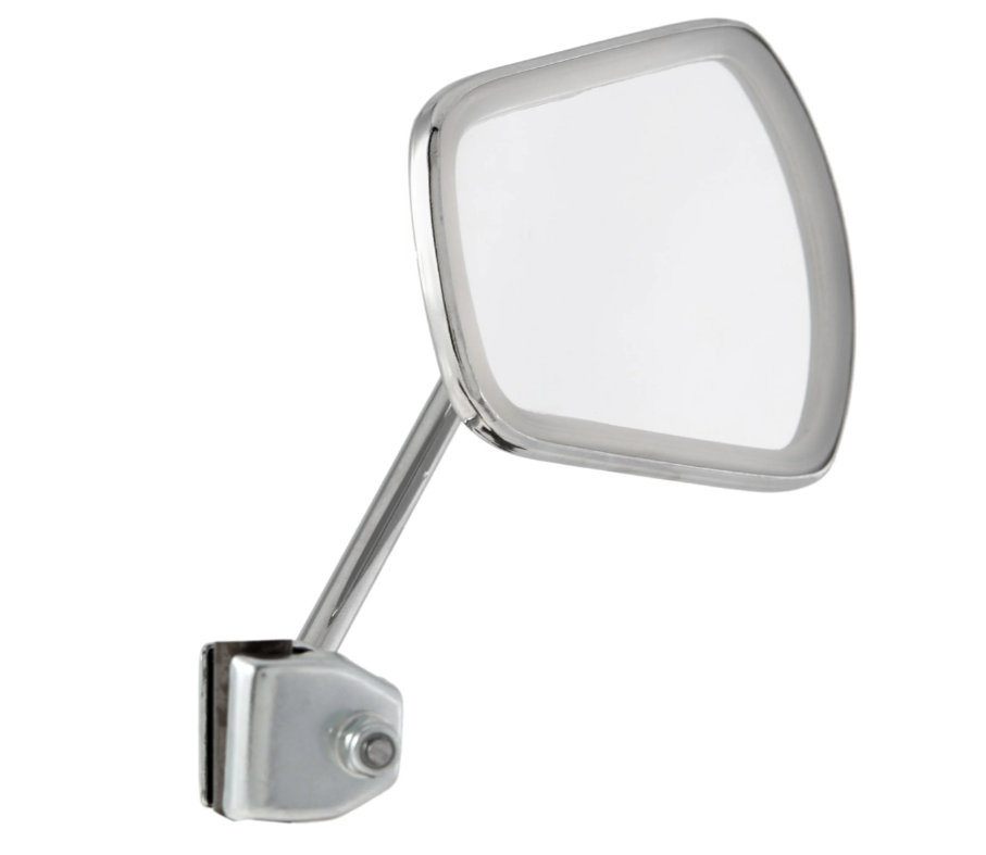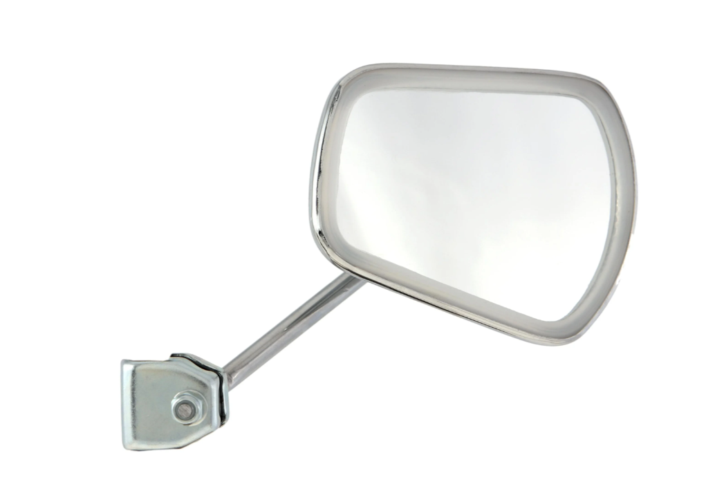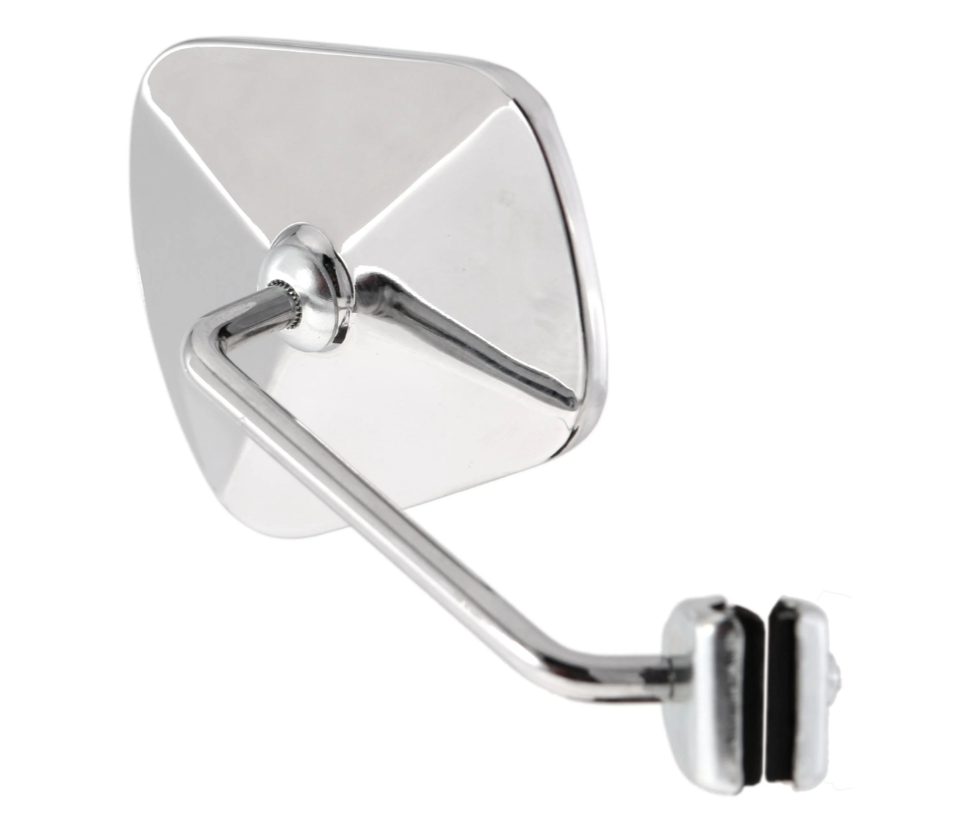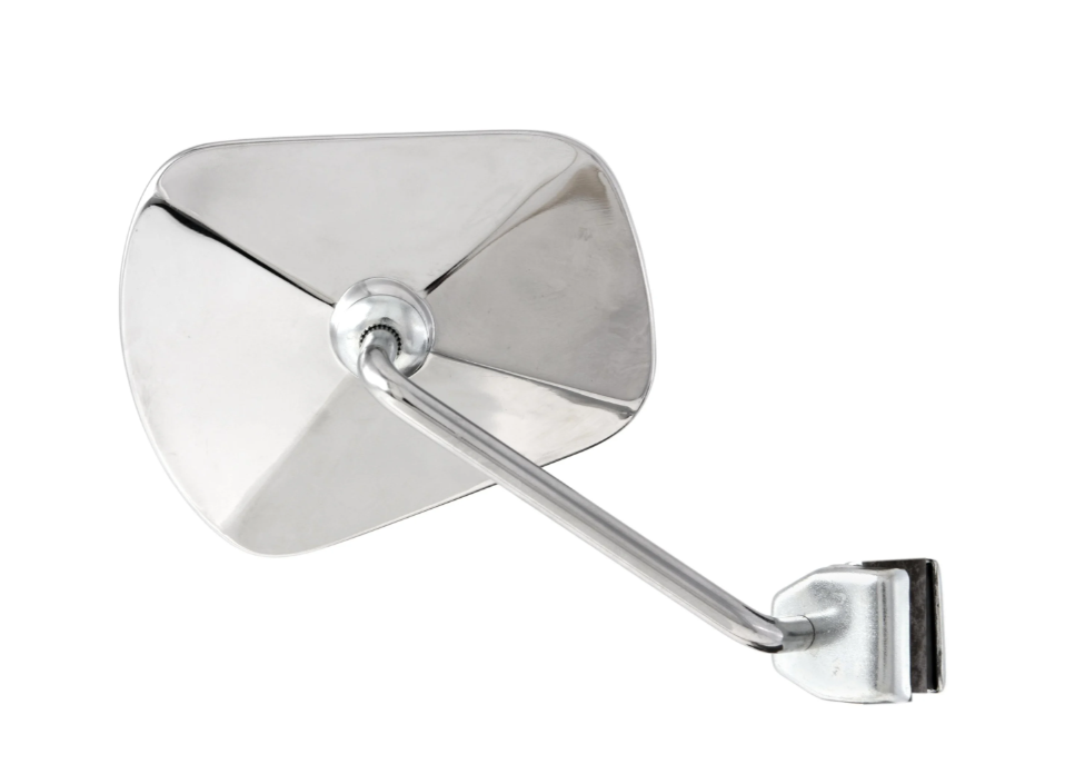 Retrovisore in acciaio cromato sinistro o destro con fissaggio allo scudo per Vespa e Lambretta.