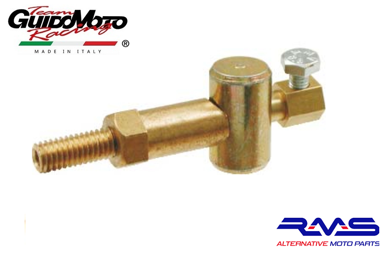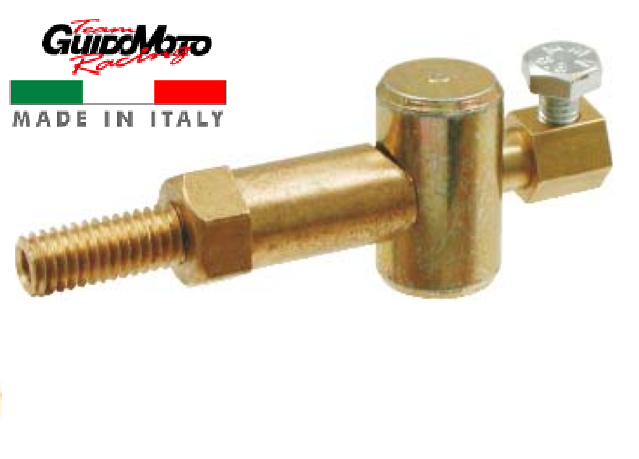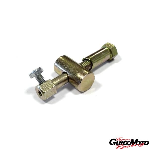Morsetto universale in acciaio zincato con registro incorporato per cavi freno e frizioni.